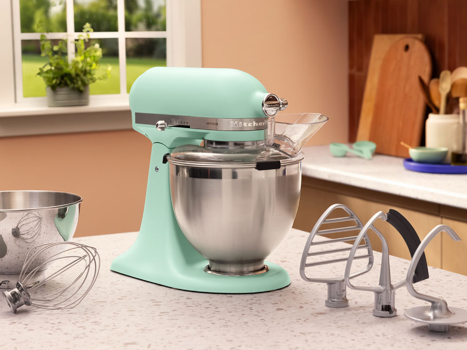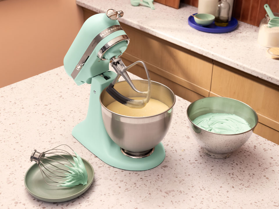 Ovaj vas samostojeći mikser poziva da pauzirate, opustite se i ponovno se povežete sa svojom kreativnosti u ovom svijetu koji nikada ne staje. Stoljeće inženjerstva tvrtke KitchenAid pruža vam pouzdanje da prevladate sve prepreke. Kućište od lijevanog metala čini ga čvrstim i izdrživim, a svaki detalj, od obrade pješčane na dodir do metalnih regulatora i ukrasne trake, prikazuje pažljivu izradu. Vedra nijansa Spearmint unosi osvježavajuću energiju u prostor, a miješanje, mućenje i miješenje pretvara u trenutke radosti i kreativnosti.